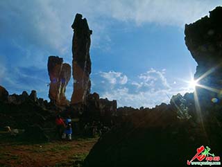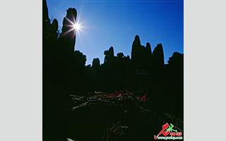 彝族原始宗教起源于万物有灵论,认为,每一株小草每一棵树,甚至每一条河流每一块石头都是有灵魂的。按照这样的观点,石林的每一块石头都有灵魂存在着,看着剪影很美,而又存在了几亿年的石头,总会不自觉地想到这样的轮廓里藏着怎样一个灵魂,当这些石头以一成不变的姿势贯看了春花秋月,却只能以一种沉默的目光审视着昼夜的更替、四季的轮换又无法表达自己的情感时,人们或许就应该把每一块石头都赋予生命,并在对生命尊重的意义上来看待每一块石头,把历史理解得更加长远一些。