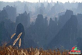 以形态而论,石林是以阳刚之美见长的,阳刚是石林的主调,那如笋如柱,如剑如戟的石峰,处处显露出雄奇的气质,特别是剑状石林,往往让人感觉到刀光剑影、须眉霸气的映象,整个千余平方公里的喀斯特峰峦山野,也象是茫茫的藏龙卧虎之地,巍然然雄风百里。
